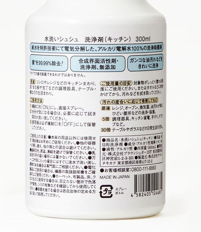 水洗いシュシューKITCHENーBED&ROOMアルカリ性次亜塩素酸水(一般細菌除去、アルコールフリー)