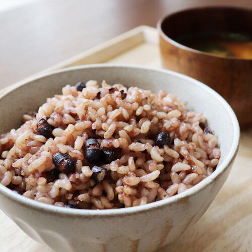 国内産有機栽培玄米に国内産有機小豆を混ぜて炊いた、