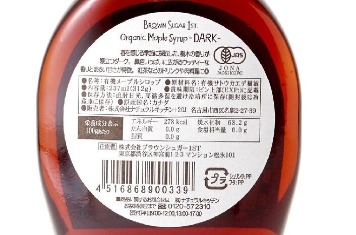 様々なビタミン、アミノ酸、タンパク質、有機物、ポリフェノールが含まれていて、他の一般的な甘味料に比べるとビタミン、ミネラルの含有量が高く、白砂糖やはちみつと比べてカロリーが低いのが特徴です。
