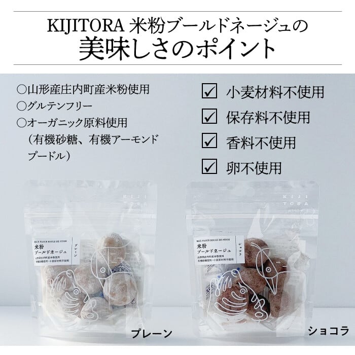 上品な甘さと素朴な後味 最上級の繊細な口溶け米粉ブールドネージュ プレーンその名の通り、雪の球のようなフランス菓子のブールドネージュを贅沢に山形産はえぬき米の米粉で作りました。米粉、バター以外の材料はすべてオーガニックにこだわり、安心してお召し上がりいただけます。王道のプレーンは上品な甘さと素朴な後味が、後を引く美味しさ。ほろほろしっとりの食感で心もほどけていく優しいお菓子です。小麦粉や卵は不使用、グルテンふりーなので、アレルギーのある方や健康意識の高い方にもおすすめです。ご自身や家族のために、大切な方へのプレゼントなどにもどうぞ。