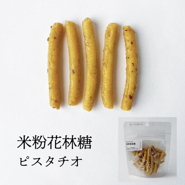 ポリポリ サクサク食べ始めたら止まらない美味しさ!お米からできた、米粉のかりんとう「米粉花林糖・ピスタチオ」しっかりした豆の風味と、ほのかな塩味。お酒との相性も良い贅沢な逸品お米本来のやさしい甘味としっかりとした歯応えが特徴の、グルテンフリー花林糖。小麦アレルギーやヴィーガンにも対応。まろやかな味の黒糖味、すっきり上品な甘酒味、ほんのり塩味が新鮮なピスタチオ味の3種類。お子様からシニアの方まで、家族みんな一緒に、安心してお召し上がりください。