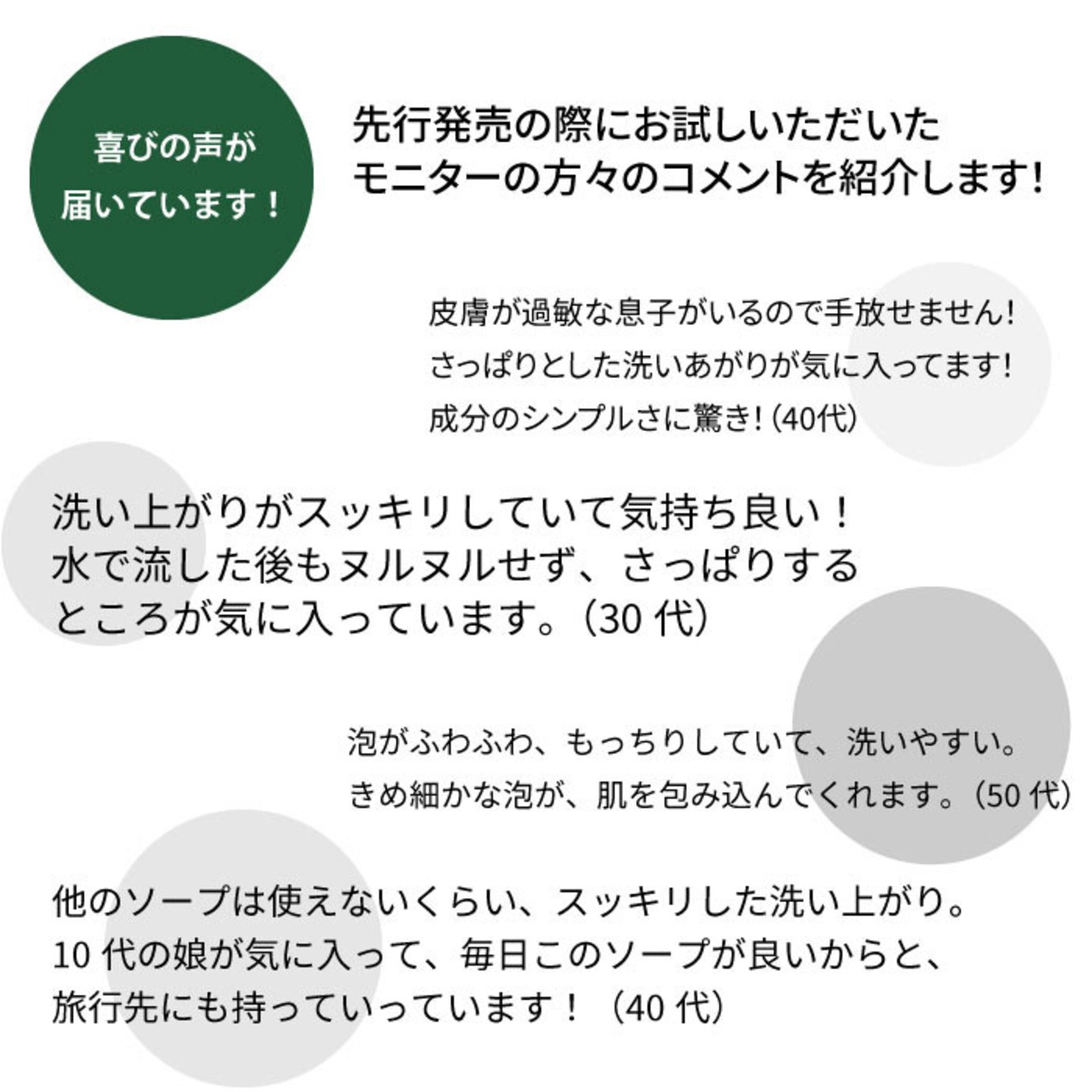 100%オーガニック素材 JONAコスメ認証取得 石けん素地と食用ココナッツオイルだけでつくった 100%ピュア ボディーソープ 使い心地がやさしいのに、しっかりとした洗い上がり!